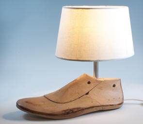 Tischlampe mit einem Original-Schuhmacherleisten als Lampenfuß
